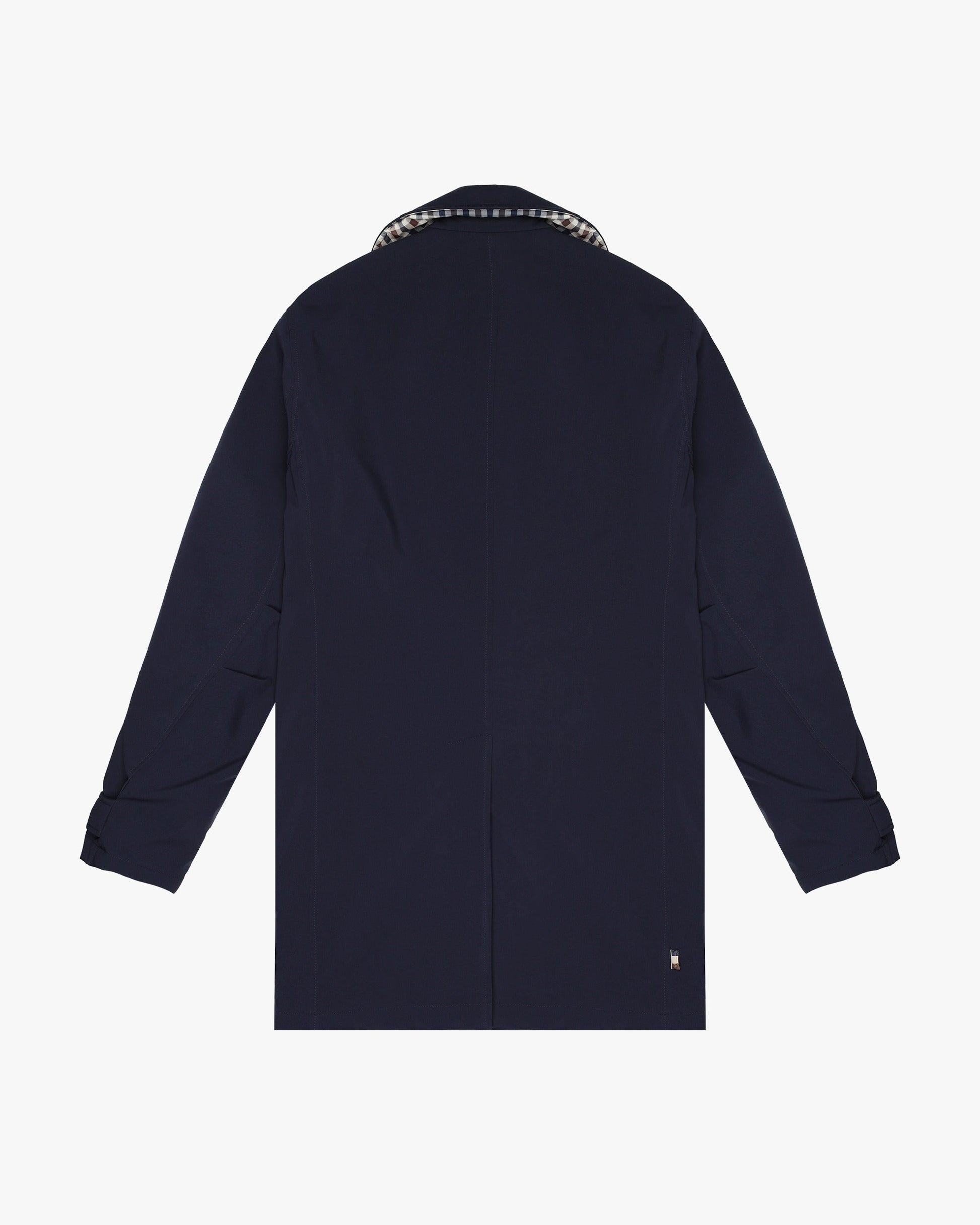 Un’interpretazione contemporanea del nostro trench iconico, rivisitato in Soft Shell per offrire comfort e performance tecnica. Il tessuto — una costruzione doppio strato in poliestere e spandex — garantisce protezione e struttura, mantenendo un’estetica pulita e moderna. L’interno è imbottito in Primaloft® con trapuntatura a cipolla e presenta uno spallone in tessuto Club Check, richiamato anche nel contrasto sotto al bavero del collo. La silhouette mantiene l’eleganza essenziale del trench originale, reinterpretata con un’attitudine più fluida e versatile.